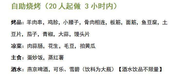 18.30-20.30 晚餐烧烤含酒水(自助)