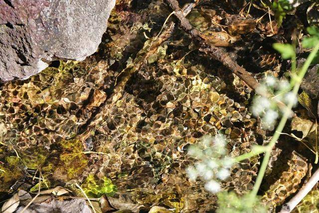 水源头,清澈透底,阳光下的水纹,如同晶莹的宝石。