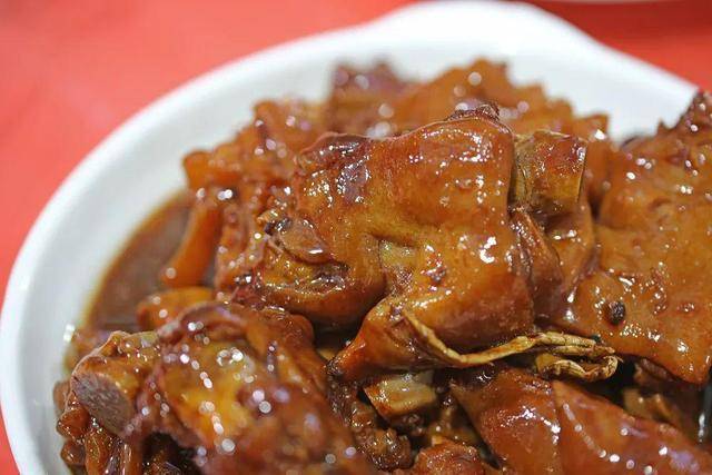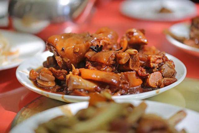 村里的民俗户推出的猪蹄宴,猪蹄肉质肥而不腻,入口即化,炖煮的火候极佳,搭配上农家红烧肉、炖柴鸡、白菜豆泡、拔丝咯吱等满满一桌子的美味,令人大快朵颐。