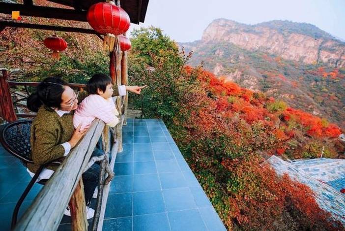 红叶节里震撼的莫过于漫山的万叶皆丹,不留一点遗憾的红让你惊叹自然的神奇。当满山黄栌渐渐被秋阳点亮,大块的色彩嵌在莽莽山谷两侧,直令人如痴如醉。