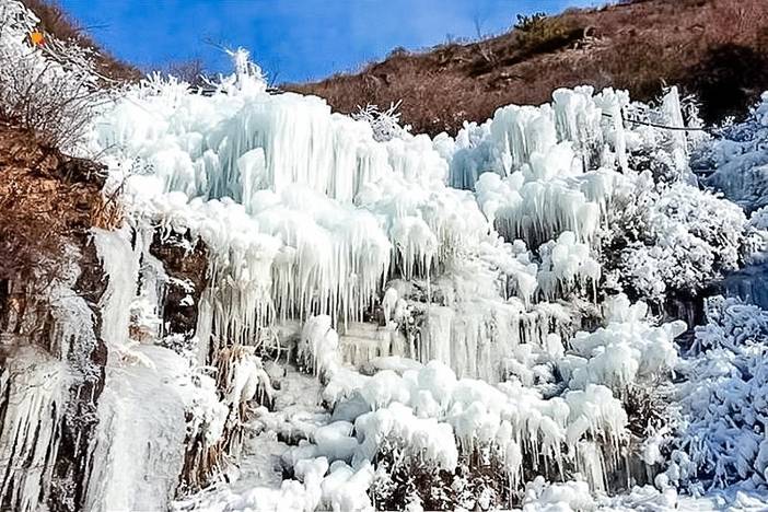 天然冰瀑、冰帘、冰花美景、冰挂