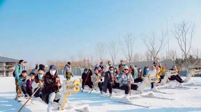 每个团队队员参赛,先从一个雪圈开始跑动,往返接力的方式,完成所有队员参与,最早到达终点的团队成绩越高。