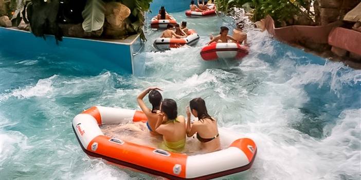分为南、中、北三大区域。南区为风情养生区,热带植物茂盛;500米回旋形漂流河道围成一个椭圆形的热带风情岛,等待着勇敢者们的体验、挑战;中区是温泉高温体验区,水温依次从低到高,游客可以根据自己的体感逐一享受;北区是温泉理疗区。