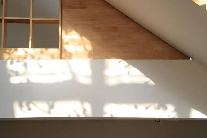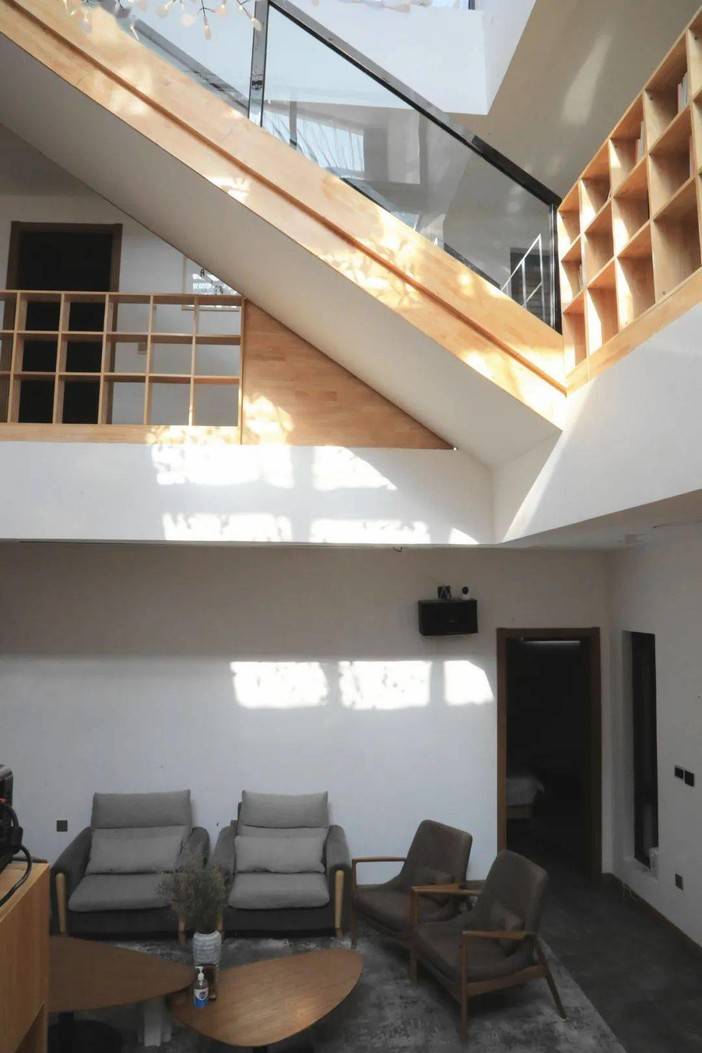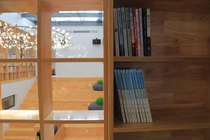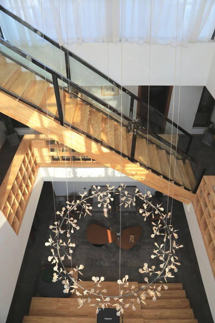 置身其中,感觉每一层都得到了连通,从顶层悬窗透进来的阳光打在木色之上,温柔而宁静。