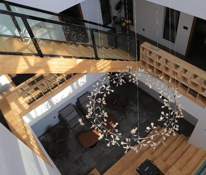 望向挑空中心的阶梯,简约、大气、质感十足,这真是一个能让人寻找灵感、汲取知识、悠闲享乐的地方。
