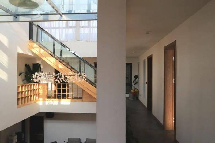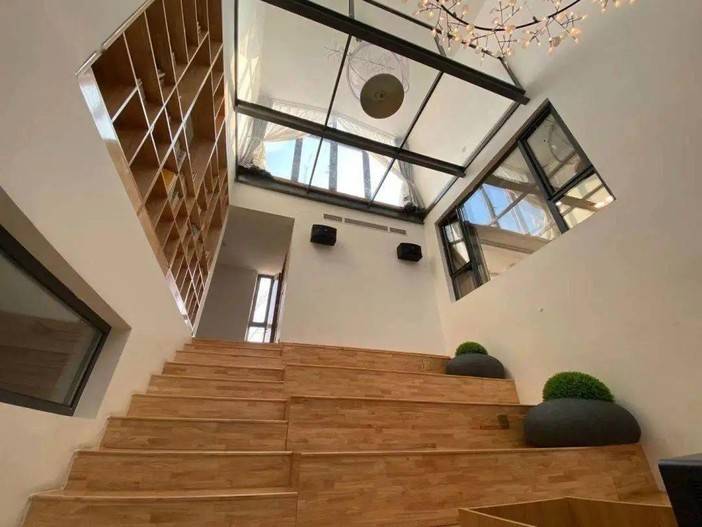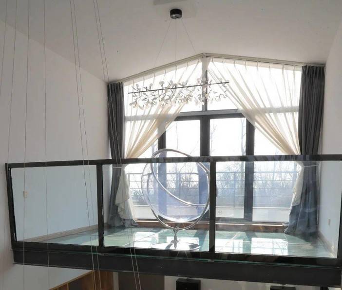 三层楼高的室内挑空,木质阶梯,铁艺装饰,和悬浮的玻璃露台让这里显得通透明亮,视野非常开阔。