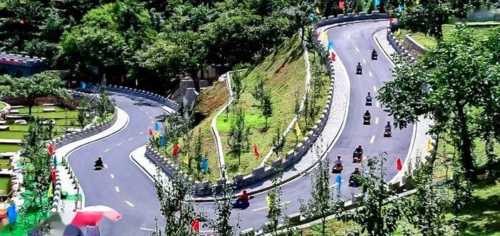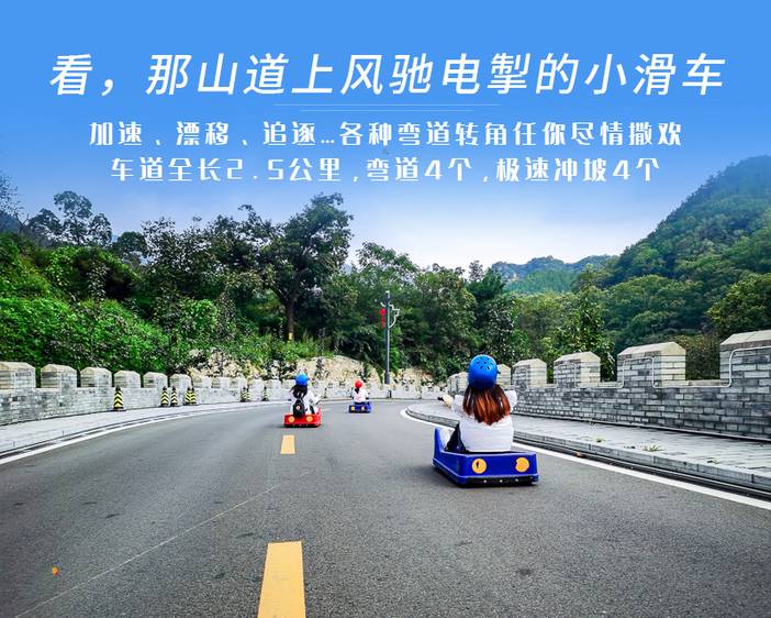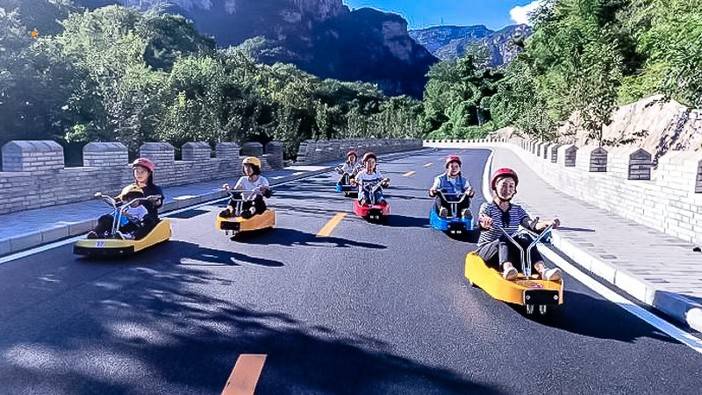 坐在小滑车上,酷酷地滑下山,帅呆了。这个活动被越来越多的人喜爱,许多人为此而来。这里的网红山地小滑车是引进了新西兰的山地滑车项目。车道全长2.5公里,弯道4个,极速冲坡4个,体验爽极了。