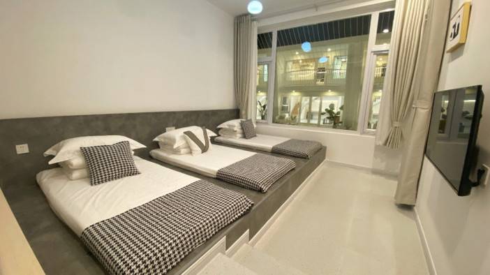 有8间独立的房间,空间灰常大,能容纳23-34人同时住