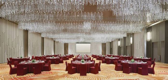 酒店拥有大宴会厅—全厅面积达950平方米,挑高6米;无柱式日光大宴会厅可分隔使用,最多可容纳50桌圆桌宴会;宴会厅外450平方米的门廊可作为补充,使得会议空间及形式更加多元化。多功能会议室—共有6间多功能会议室,适合小型宴会及会议使用,户外500平方米的绿地草坪,也是酒会、小型宴会的优享之选。
