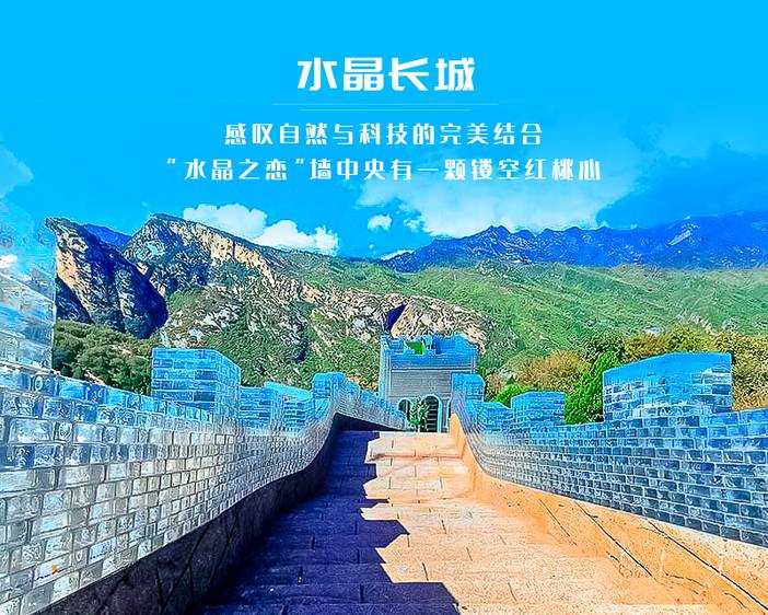 在清凉谷景区,就有一段长城,而且还是国内首个“水晶长城”。它的独一无二性,让古代的宏伟建筑,在今天的大胆设计与材质下,展现非凡魅力。