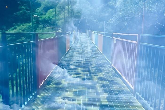 七彩祥云桥为廊风索式人行索桥,桥面宽2米,桥距谷底落差数百米。因其横跨在峡谷之间,云雨天气周身是皑皑薄雾,使人有腾云驾雾的漂浮感故而得名。透过镂空桥面向下俯视,凌空数百米,“斗胆前行步步惊,步步惊心步步行”,脚下的世界一览无余,刷新您对高空刺激的认识。