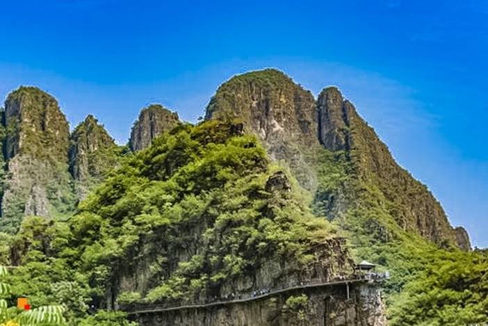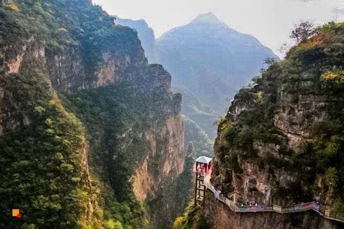 七彩玻璃栈道:环翠屏峰倚峭而建,全长369米,高差600余米,由玻璃栈道、七彩玻璃栈道、全景玻璃平台、特效玻璃栈道组成,犹如一道彩虹桥通向云端,在云雾中若隐如现,行走之上如云中漫步,置身于仙境。