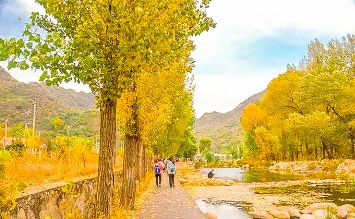 到达徒步神堂峪山水栈道全程8公里途经溪流、木栈道、山洞、古长城等景观,