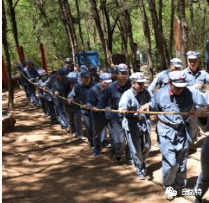 (2)追忆篇(重走长征路)长征是宣言书;长征是宣传队;长征是播种机。我们利用1500米长的山地,设立14个障碍,再现湘江战役、四渡赤水、飞夺泸定桥、强渡大渡河、腊子口战役的英勇、体验爬雪山过草地的艰辛,让参加活动的人员达到自我警醒,自我教育的目的。
