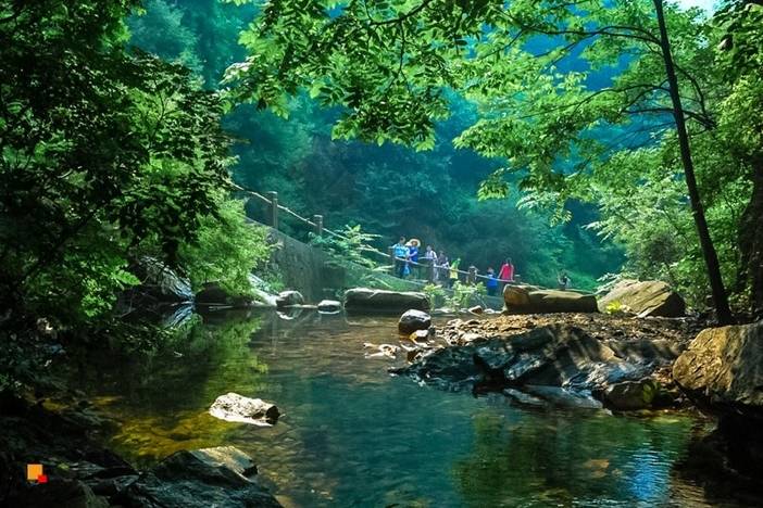 这里峰林峡谷雄险,茫茫林海秀幽,潭瀑溪水长流,藤萝攀援缠绕,被专家学者称为“天津的神农架”、“北方的热带雨林”。