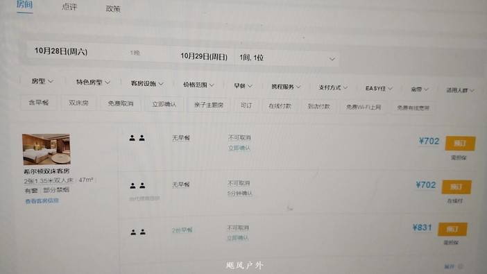 某程周末入住房单晚含早831元