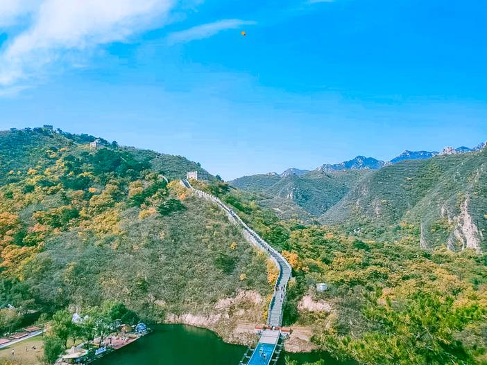 至此既可欣赏秀丽的湖光山色,又可观长城的清灵俊秀,还有绿树红花相伴身旁,使人有远离城市喧器,回归大自然的美妙感觉。