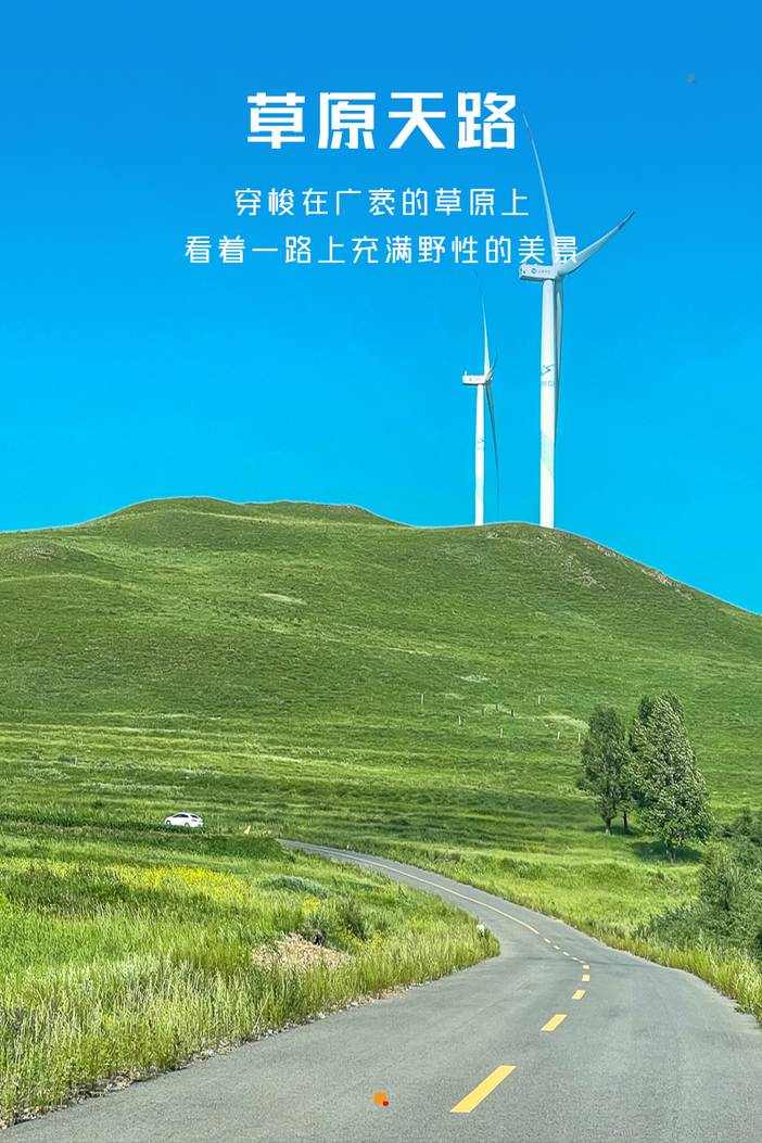华北最大风车群公路,沿线蜿蜒曲折、河流山峦、沟壑纵深、草甸牛羊、景观奇峻,展现出一幅百里坝头风景画卷。