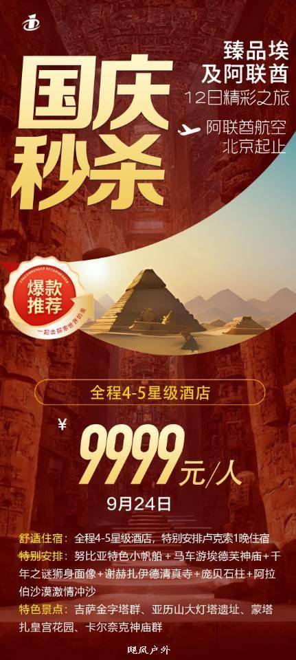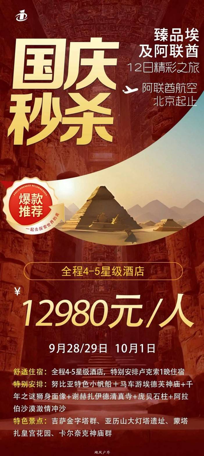 埃及+阿联酋12天【国庆特辑】9.24秒杀价9999/人