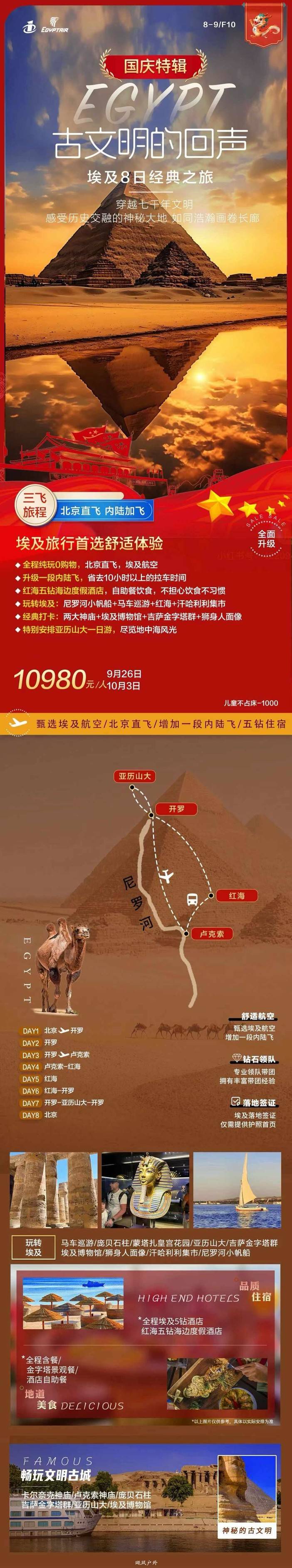 埃及纯玩经典8日【国庆】9.26日 | 10.3日-10980元