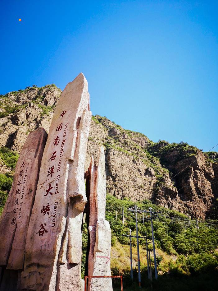 南石洋大峡谷拥有一峡九谷,峡谷全长20公里,岩石、地层种类齐全,包括多种沉积岩、变质岩和火成岩,历经亿万年的地层和岩石经地壳运动,构成了景区最具吸引力的峡谷风光,纵深数十里的大峡谷,两侧百余米高峰如刀削般陡峰,峡谷、奇峰、悬崖构成了雄、奇、险、幽于一体的复杂地貌,蕴育出天王塔、罗大天、悬棺、一线天、天井、黑龙潭、擎天一柱等极其丰富的地文景观,是京西活的地质教材。在峡谷中穿行,山峰笔直挺立,奇峰怪石比比皆是,可以尽情欣赏大自然的鬼斧神工。