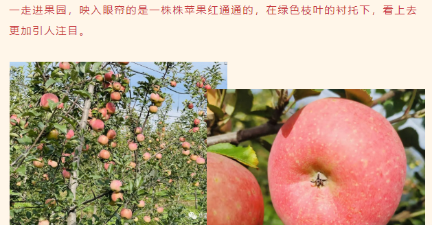 大家通过参加采摘苹果活动,一方面感受到了田园风光的美好,一方面体会到了亲手摘下一个又一个苹果带来的乐趣。尽管天气微有寒意,可是大家采摘苹果的兴致却非常高涨,望着满园苹果,大家摘的不亦乐乎,笑的喜气洋洋,玩得无比开心。