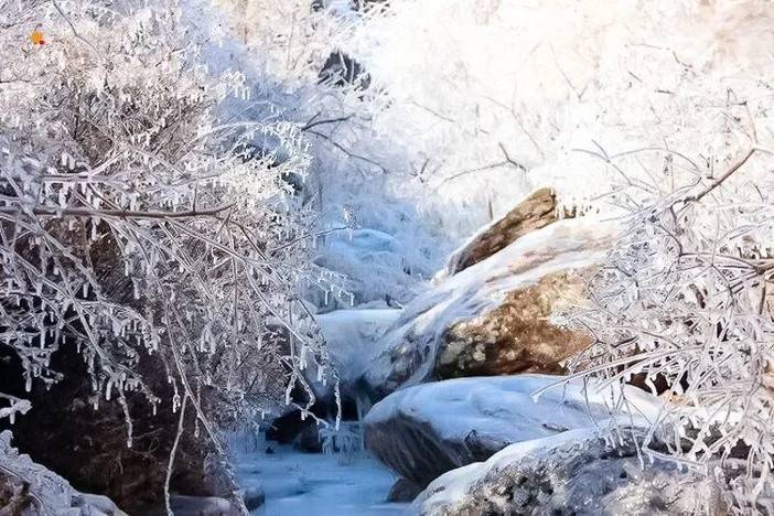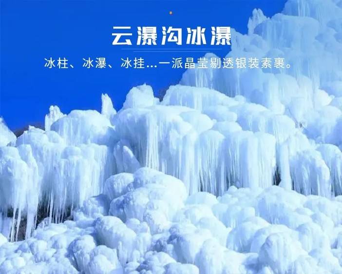 云瀑沟因沟中溪水、瀑布众多而得名,冬季时,这些溪水、瀑布凝结成壮观的冰瀑。高耸的崖顶上,冰瀑宛如银装素裹的绸带蜿蜒垂落,在阳光照耀下闪烁光芒。千姿百态的冰瀑和冰挂,或圆润如玉,或修长雅致,在蓝天映衬下更显梦幻。