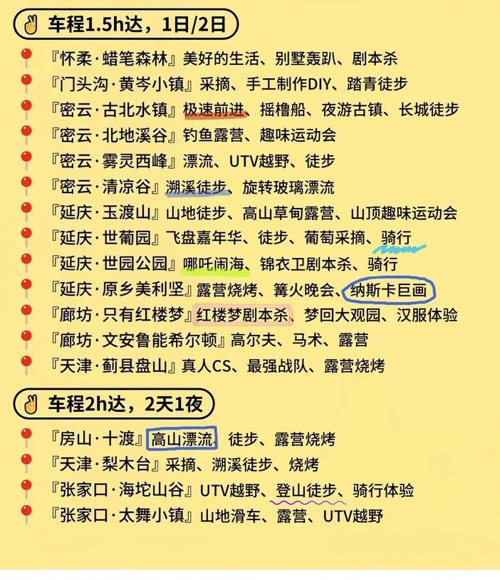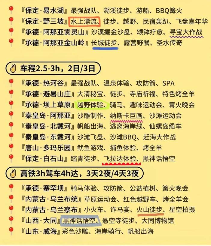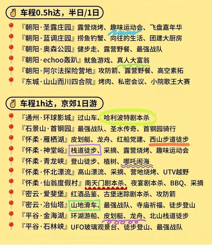 今天为大家整理了北京及周边的团建好去处,绝对让你和同事们玩得尽兴!无论是露营地、欧式庄园,还是度假小镇,这里应有尽有。半日,1日,2-4日推荐全包含,快来看看吧!
