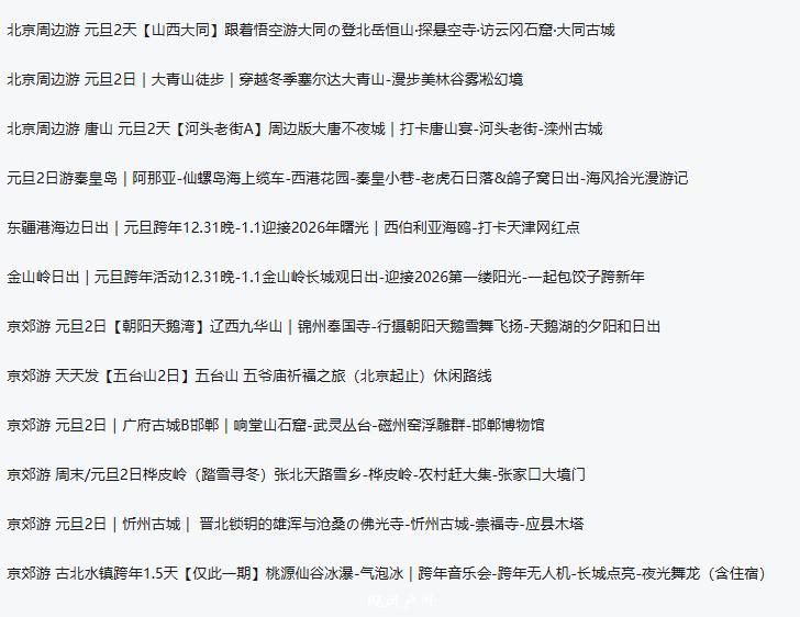 春节3日-5日汇总(乌兰布统/山西/洛阳河南/大连威海/华山西安等等)