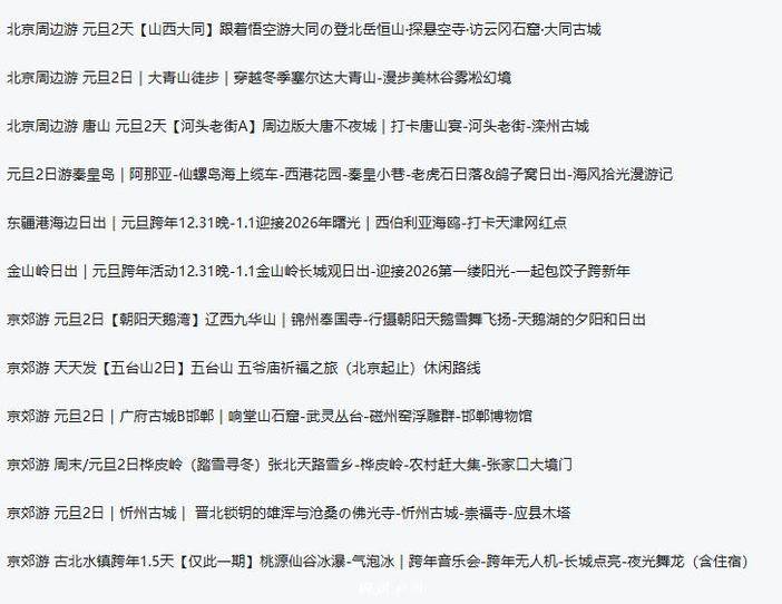 春节3日游汇总(秦皇岛/山西/老君山/大青山达里湖/乌兰布统/威海/烟墩角等)
