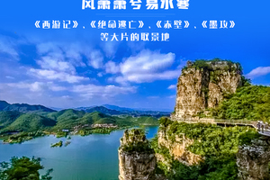 这里风景怡人,山势雄奇险峻,空气洁净无尘,湖水清澈柔美,林木繁盛茂密,湖中碧波荡漾,可泛舟戏水,可潜水畅游,可放钩垂钓,可乘船观景,是北方山水类度假首选之地。这里是86年版《西游记》、《绝命逃亡》、《赤壁》、《墨攻》等大片的取景地。