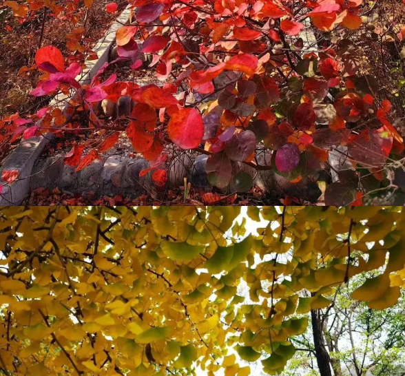 - 09;00到达登山口,在领队带领下开始徒步穿越。我们跟随领队一路领略连绵不断的群山峻岭,我们一路赏红叶拍照。