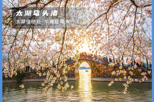 - 上午我们就在鼋头渚游览,这里被人称为“中华第一赏樱胜地”,我们可以坐游船游览这太湖西岸的美景,也可以在花海中漫步,看鼋头渚牌坊、看长春花漪、海峡友好石碑...每年的清明前后,这里的万千樱花竞相开放,春风微抚,樱花瓣漫天飞舞,给人一种进入漫画中的错觉。美女们可以穿些古装,或者带着粉嫩色系的丝巾进去拍照,一定很美。