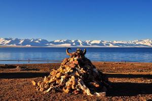羊湖是西藏三大圣湖之一的淡水湖,湖水如羊脂般清澈,湖水甘甜,可以饮用。也是电影《红河谷》的拍摄地。湛蓝的湖水与远方的雪山连为一体,加上两岸各色的山脉、极具特色的藏民族村落、遍地的牛羊,一路走来,心旷神怡。岗巴拉山顶是欣赏羊湖最佳位置,建议游玩时间30分钟左右。