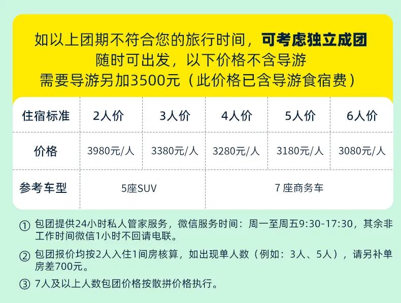 【成团说明】2人成行,8人封队,全程司机兼向导;