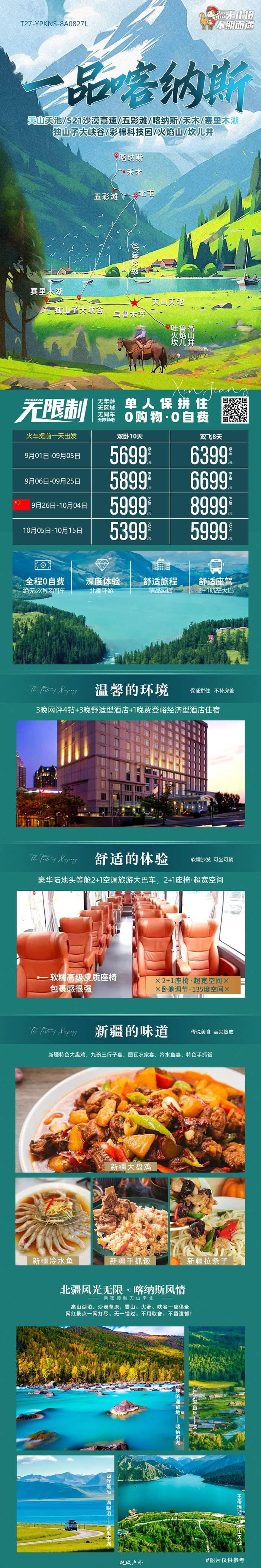 单一起报名游客在火车上的车厢及铺位。随机出票,敬请谅解!若在已出票的情况下退团,请携带本人身份证按照约定时间自行前往火车站取票退票;北京以外其他城市预定北京出发线路的客人如确认退团,请联系我社按照约定时间自行前往火车站取票退票。若因实名制因素无法退票,产生损失由客人自行承担。如出票后游客有退票,需自行前往火车站退票,我社不能代退。 ★旅游用车★ 旅游行程中12 人及以上安排航空座椅式2+1 车型;11人及以下安排其他车型(21 座以下车型均无行李箱);接送飞机/火车根据人数安排车型(保证一人一座); ★酒店住宿★行程中所列酒店双人标准间住宿(3 晚高档型/网评4钻+3 晚舒适型/网评3 钻+1 晚贾登峪经济型酒店)酒店等级评定来自于携程网用户评定!旺季在住宿紧张的情况下则安排周边地区入住,不低于同等标准。行程中参考酒店均为常用酒店,不接受游客指定。(新疆住宿条件有限,与内地酒店相比会低一档次,敬请理解)。 备注:如遇政府接待或其它特殊原因,不能安排备选酒店时,我社有权安排同级别、同标准的其他酒店 特别说明:门票报价已是旅行社团队的折扣价,报名前已是最低打包优惠,①故行程门票对所有证件(学生证、教师证、军官证、老年证、残疾证等证件)均不再享受任何优惠政策,其优惠价格不予退还。②此行程已做报名前打包优惠,因此无老人及儿童优惠门票退费,请悉知! ★旅游用餐★包含7 早8 正;早餐为酒店赠送/不吃不退费、正餐餐标30元/餐,午餐及晚餐不用餐不退费,十人一桌,如人数不足十人,将根据实际人数酌情安排用餐; 3、儿童不占床酒店不含早餐,请根据个人情况自行给酒店补餐费或者备好零食补充。 ★导游服务★ D2→D7 天在行程中“中文导游”讲解服务(持导游资格证上岗);因新疆旅游业处于起步发展阶段,当地导游服务无法与内地导游相比较,请游客谅解!(如全团人数10人及以下,司机负责行程中的衔接与办理相关门票事宜;行程中无导游服务,敬请谅解!);接送机/站无导游! 特别提醒:出团前一天,导游会在22:00 前和您联系,请保持手机的畅通。 ★旅游保险★ 旅行社责任险,建议客人单独购买旅游人身意外险。 ★退团说明★ 报名后,如我社已经出票(出票会有凭证),客人单方退团,损失费为相应实际地接损失和违约金。★儿童标准★2-12 周岁儿童报价只含车费、半价餐费、不含其他门票以及区间车,不含床位费(早餐费用现付),如超高产生门票及其他费用由家长现付;小孩请携带户口薄本人页原件。 ★购物自费★ 无购物场所(各景区、酒店以及公路服务区内均有商品销售,不属于行程内购物店范畴、非在本协议内商场商店内购买的商品,我社不提供退换货的协助工作,敬请谅解。)全程无推荐自费项目:特殊项目不含(如景区内小景点:景区内自费、游船、漂流等水上娱乐活动;景区小交通如索道、缆车;夜晚歌舞晚宴、美食套餐及个人消费项目等);游客根据自身喜好选择性参加。 ★温馨提示★ 此产品旅行中客人自愿放弃旅行项目(如:用房、用餐、用车、景点门票等)或中途脱团退团,地接费用一侓不退,大交通如未产生根据实际情况酌情退费。双方合同确认起,因客人自身原因退团,需承担往返大交通费、当地车费及导服。 ★优惠退费★ 行程内已含景点均为旅行社折扣后价格,行程所列景点第一大门票及赠送项目,景点门票报价已为旅行社团队折扣价,故行程景点门票对所有证件(如导游证、学生证、教师证、军官证、老年证等一切证件)均不再享受任何优惠政策,其优惠价格不予退还。赠送项目若因客观原因无法参观或客人放弃游览的费用不退不免!自费项目均无优惠!赠送 |