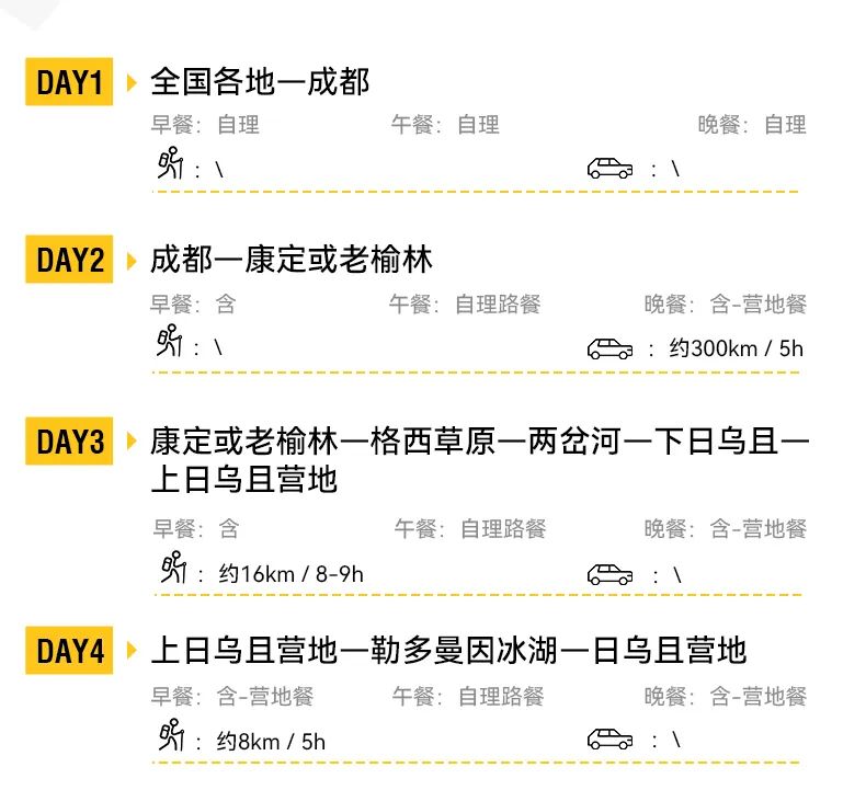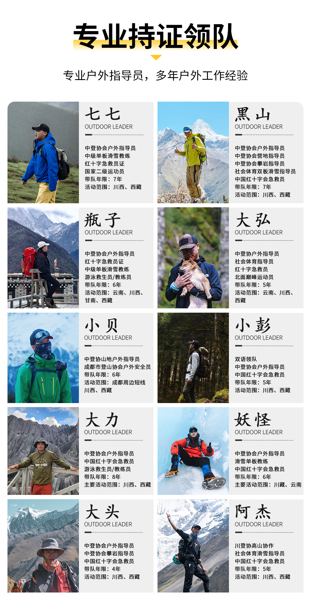 全年组队,共30期,D1为成都集合日,抵达入住酒店即可。