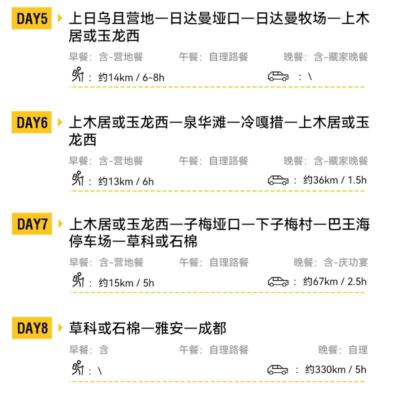 行程概览:今日为返程日,早餐后离开草科,经泸定或石棉上高速经过雅安返回成都。成都散团后可自由玩乐,如还需在成都继续游玩的,需要协助订房的,可以提前联系销售客服或负责领队。