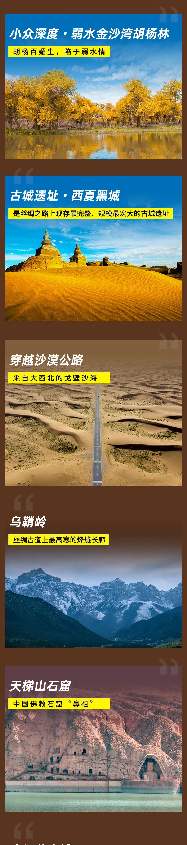 4、门票:天梯山石窟、弱水金沙湾(包含黑水城、怪树林)、额济纳胡杨林+景交车、居延海、天鹅湖、乌兰湖;