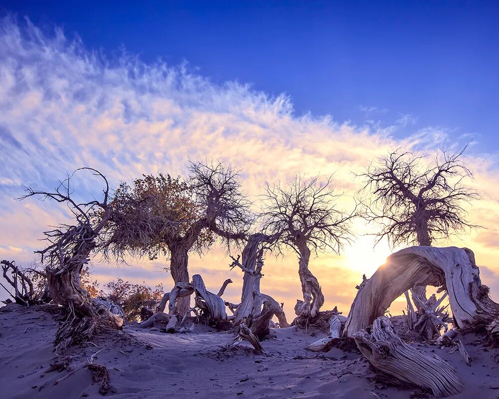 张掖市-弱水金沙湾胡杨林-黑水城-怪树林日落-额济纳旗(570km,8h)