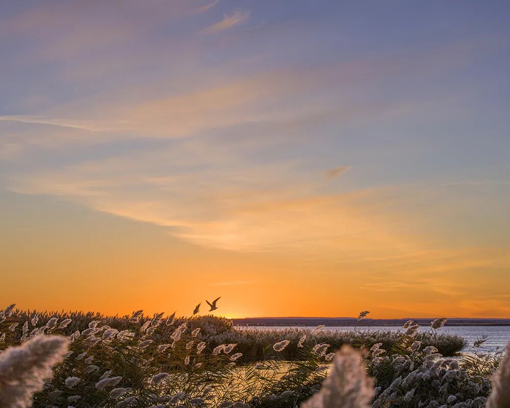 04:30今天早起,出发前往【居延海日出】,居延海曾是西北地区最大的湖泊,这里也是土尔扈特蒙古族第一个定居地。现如今虽面积不复当年,但是现在的居延海碧波荡漾,水草摇曳;当晨光洒在湖面,湖边芦苇丛都被镶上了金边,鸟儿翩飞更增添了几分诗意。我们在这里无论用什么器材,都可以拍出大片的感觉。