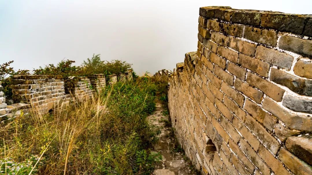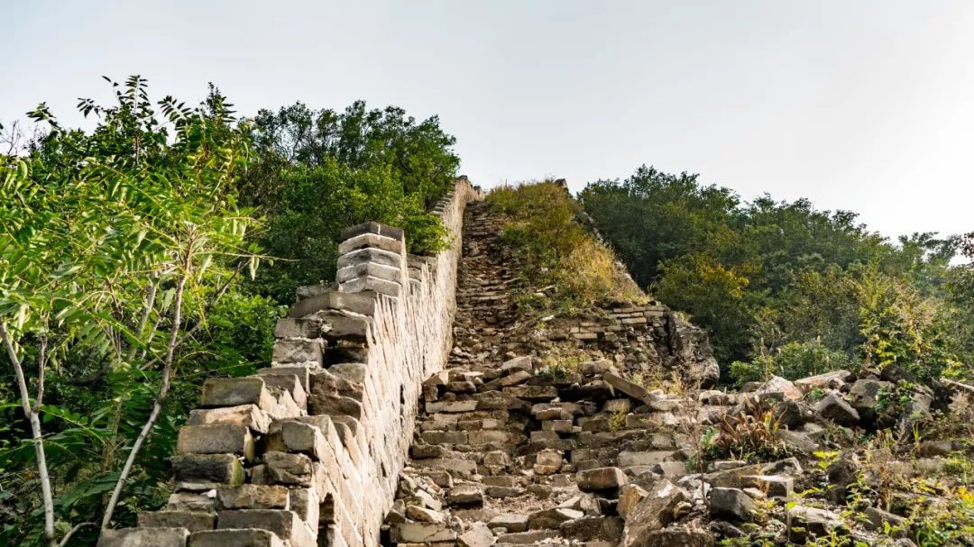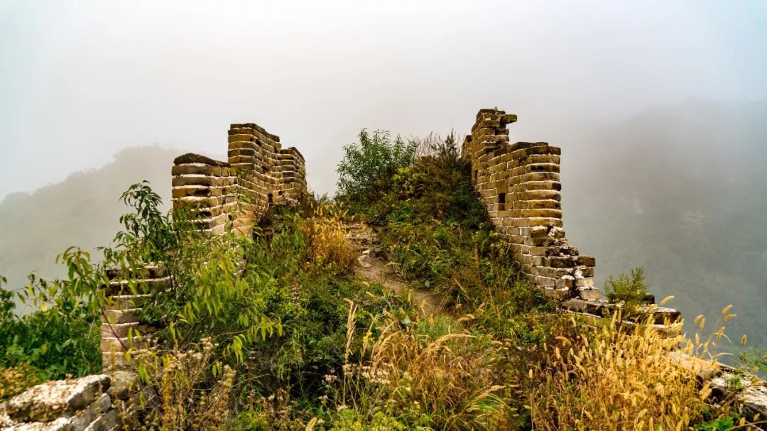 这段长城由于河北段人为的破坏,盗取城砖盖民房,使得损坏严重,又疏于失修,是忏悔的见证,至今还有没有来的及搬走的完好城砖码放在城楼上。