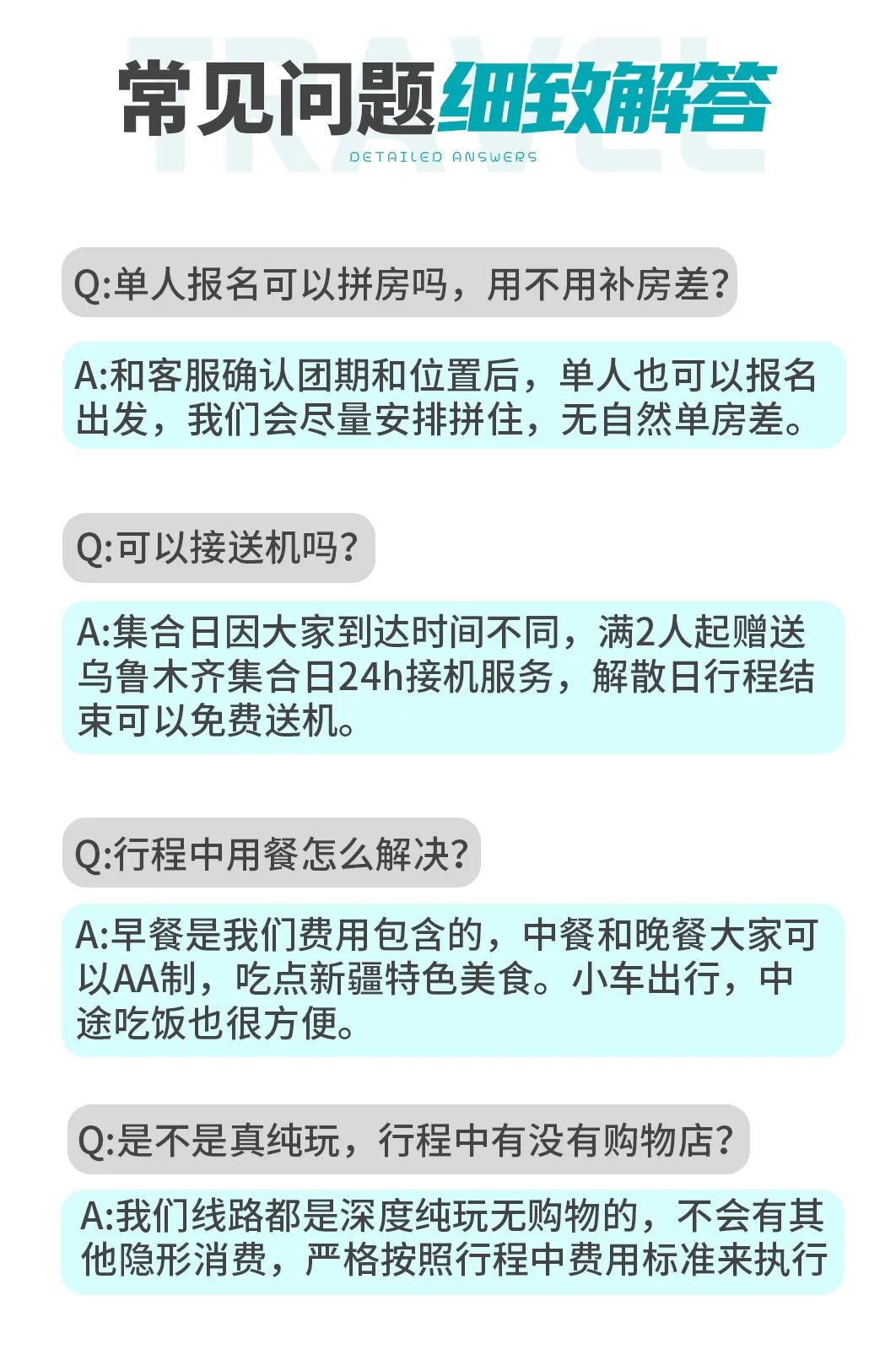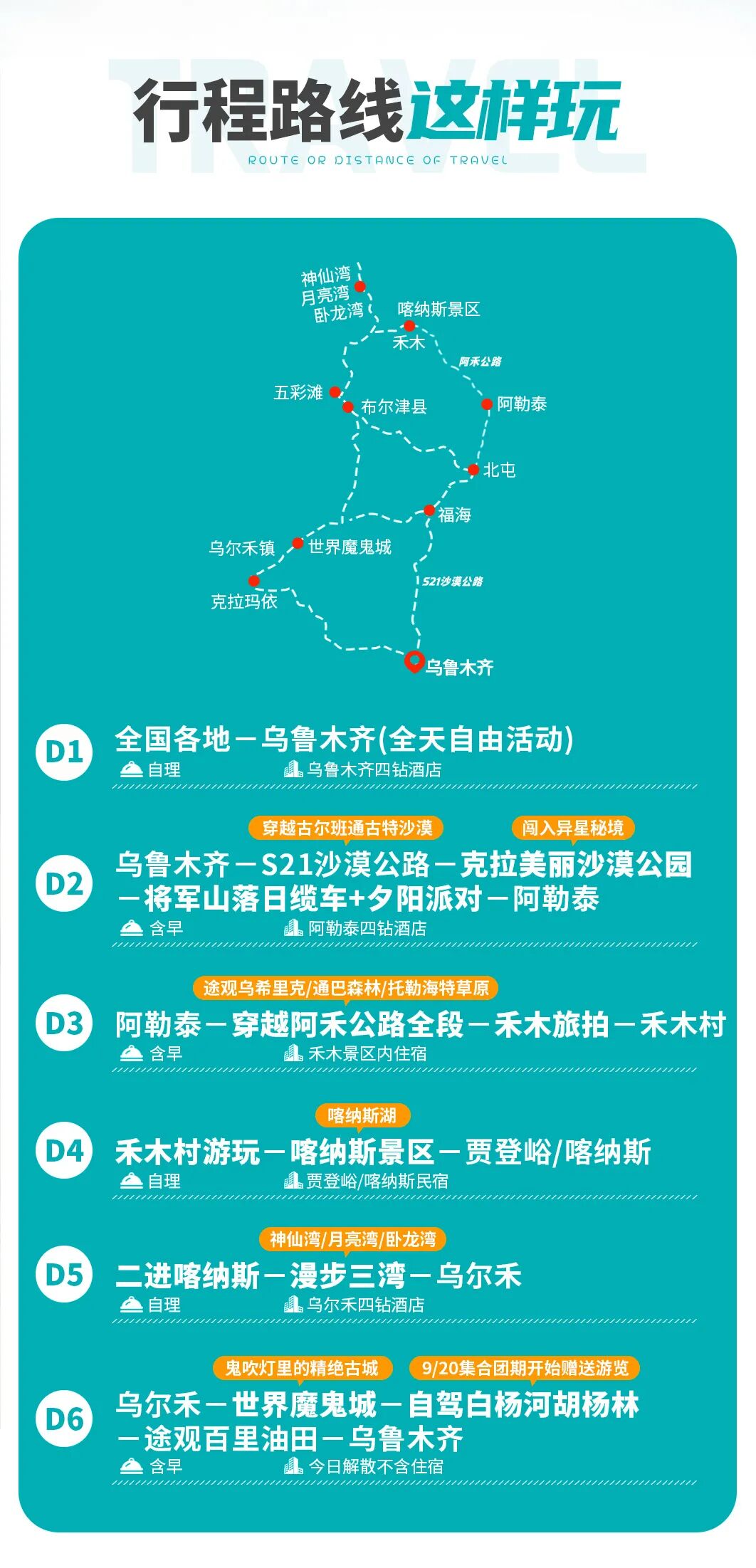 5. 在9月20日以后集合的团期赠送白杨河胡杨林景区游览,在此之前不予赠送。
