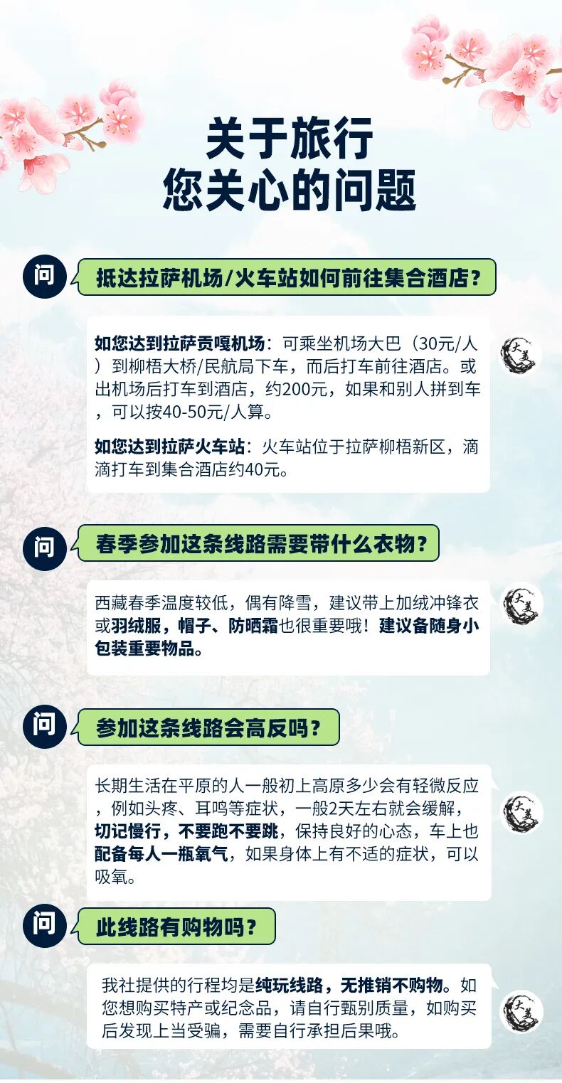 拉萨(或第2天林芝)集合,拉萨(或林芝)完团,连发8期,期期成行,