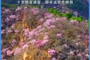 每年三月,河南新乡秋沟景区的桃花漫山遍野、竞相绽放,粉白相间的花朵与红色崖壁交相辉映,宛如世外桃源,吸引着无数游客前来观赏。