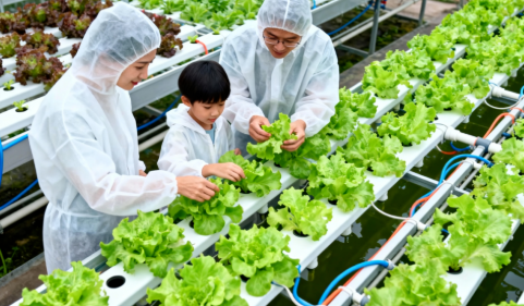 不仅如此,你还可以采摘新鲜的水培蔬菜哦——从水中轻轻提起一整株鲜活水灵的蔬菜,根须洁白如玉,叶片脆嫩得仿佛能滴出阳光。这不仅是采摘,更是一次完整的生命观察;不仅是体验,更是把现代农业的智慧与生机,亲手带回家的奇妙旅程。