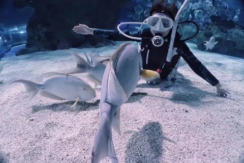 潜水体验过后,还可以在海洋馆自行参观游览,在这个梦幻的世界自由穿梭,和海底的小动物打招呼,say hello,拍合照,亲密接触……