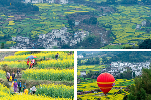江西是油菜花大省,江西最美丽的油菜花在“江岭”和“篁岭”,走进婺源江岭和篁岭,处处是粉红的桃花、洁白的梨花与层层金黄的梯田油菜花、白墙黛瓦的民居相辉映,构成一幅幅唯美的天然画卷