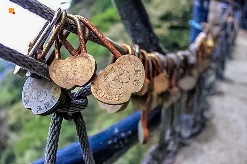 这主要在欣赏油菜花景观的角度不同。在篁岭赏油菜花,最大的不同就是人的视线是从高处朝下看,俯视的效果比在平原地面上赏花,更加具有立体感。篁岭古村是梯田的制高点,景区还在山岗上搭建了观景平台,以及两座高空铁索桥,还有两个高山缆车,都为游客从高处欣赏油菜花提供了便利条件。