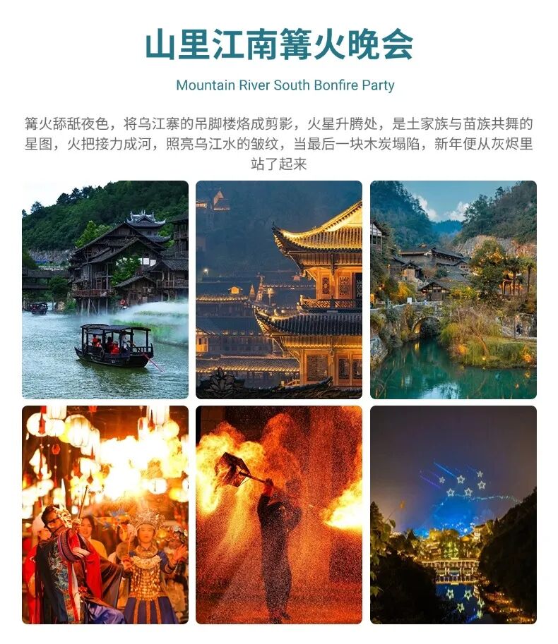 今日早餐后前往圣火走过的苗族-朗德上寨,走进苗寨需要经过12道拦门酒,热情的苗家姐妹盛装出席,沿着山坡依次排列,手捧牛角杯,笑容甜美,欢迎每一位远道而来的客人,午餐后乘车前往【乌江寨】国际旅游度假区,车程约3H(景区电瓶车已包含,不限次数乘坐),江南千条水,云贵万重山,一湾乌江碧水飘落在山间,如黛青山拥簇着乌江寨,两岸吊脚楼错落有致,满满的黔北风情,宛若治愈力拉满的世外桃源,青山、绿水、吊脚楼、青砖黛瓦、民居、民俗、水舞秀...描绘出一幅黔北民居群落的壮美画卷,在太乙阁码头坐上一艘摇橹船,穿行在氤氲水汽之间,鳞次栉比的吊脚楼扑面而来,斜倚船头,坐看云烟升腾,晨光下的美景犹如一幅水墨画在眼前晕染开来。景区是集观光、休闲、度假、康养、会展为一体的大型综合业态的旅游目的地。景区内办理入住酒店后自由游览,晚上景区内可以欣赏震撼壮观的水舞秀、灯光秀、独竹飘,无人机编队表演等。最后在盛大的篝火晚会中结束一天的行程